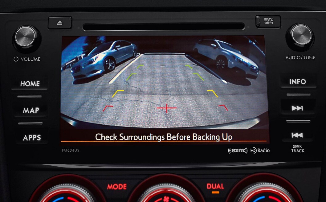 A standard rear-vision camera enhances rear visibility when backing up. Its display includes guide lines to help you see the vehicle's path and judge distance to other objects.